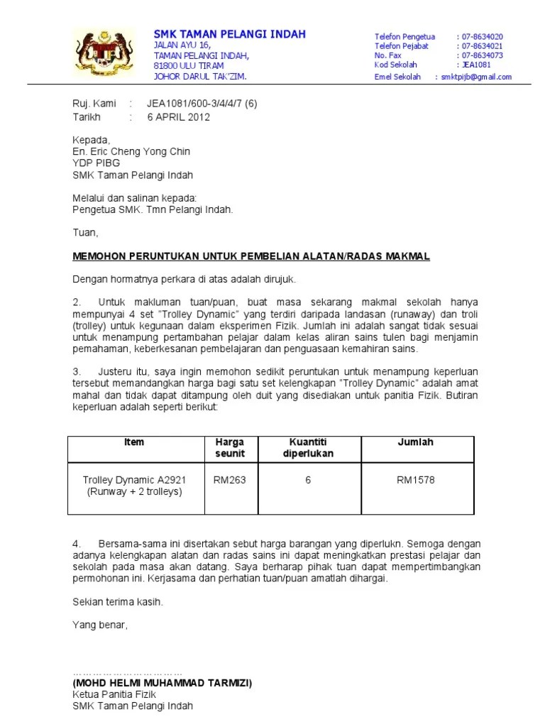 Contoh surat permohonan pembelian peralatan. Kertas kerja mohon beli printer. Contoh surat permohonan bantuan laptop 1 malaysia from. Memohon untuk meminjam peralatan memasak. Contoh surat permohonan pengadaan barang kantor. Misalnya saja contoh surat permohonan pengadaan barang yang wajib dilakukan.